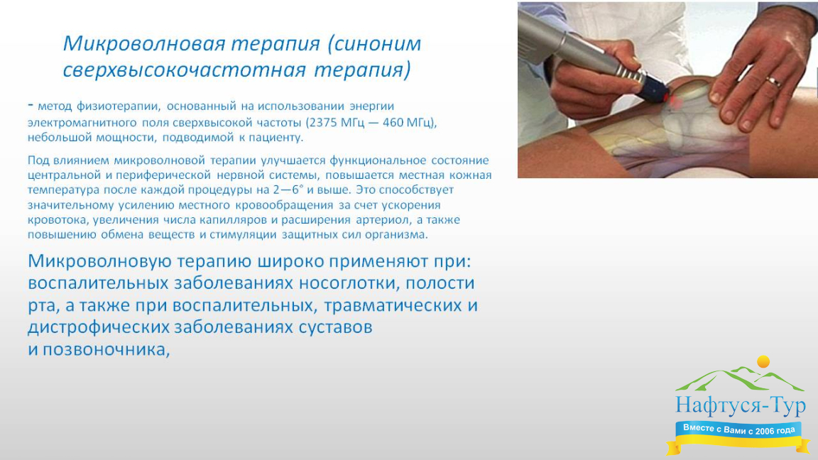 Микроволновая терапия, подбор санаториев и пансионатов