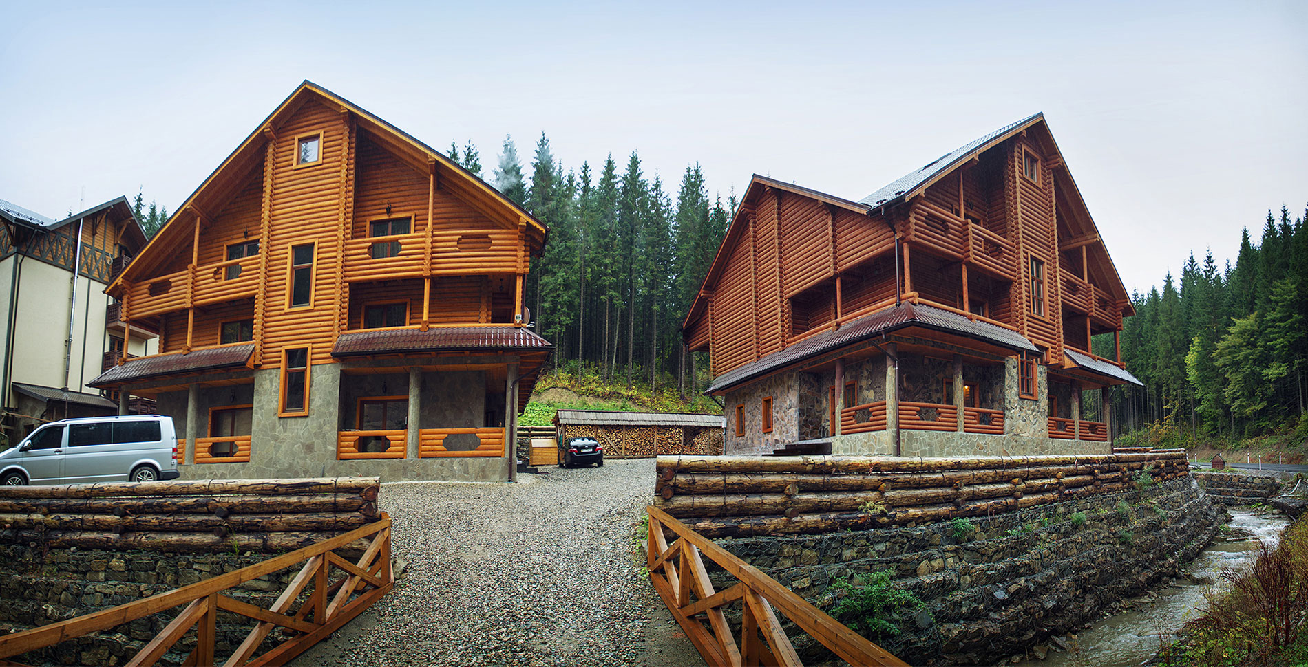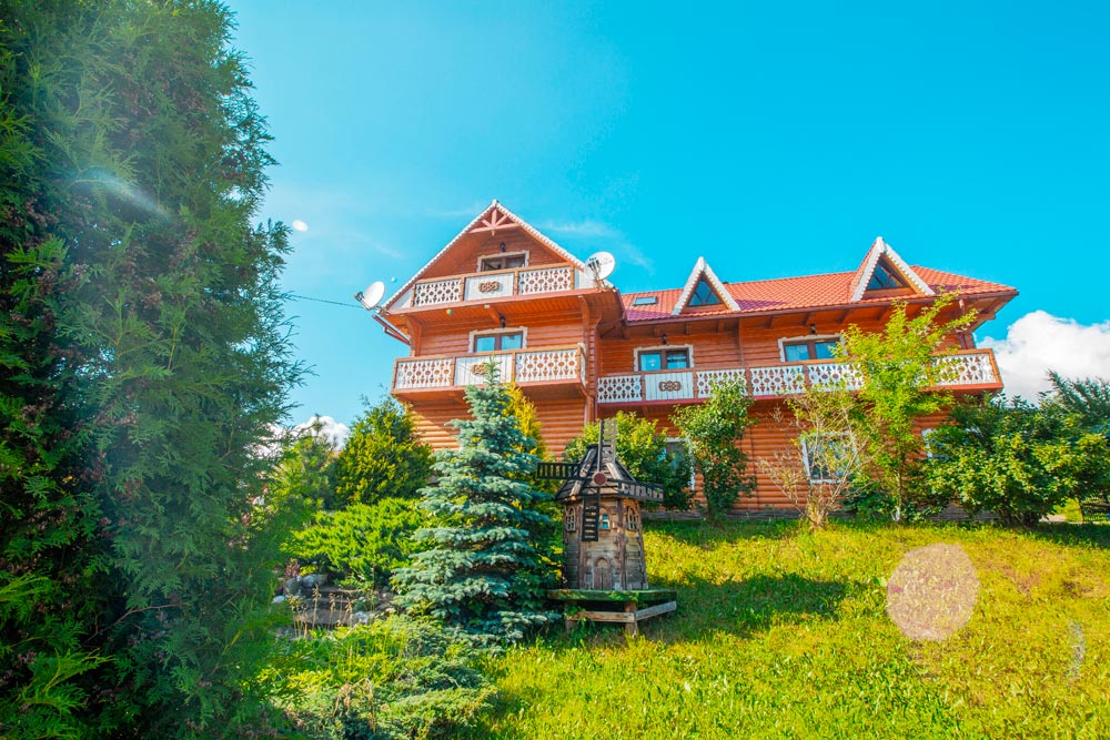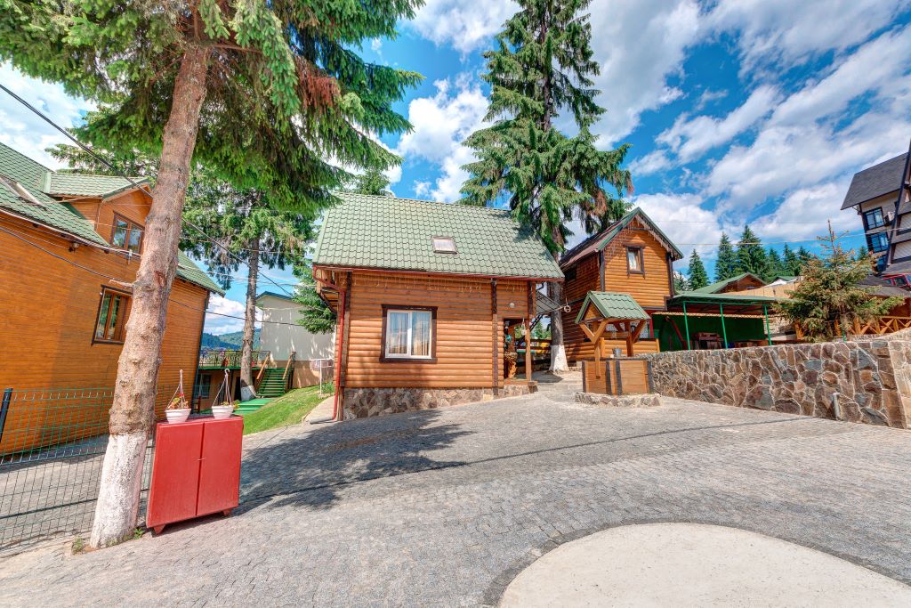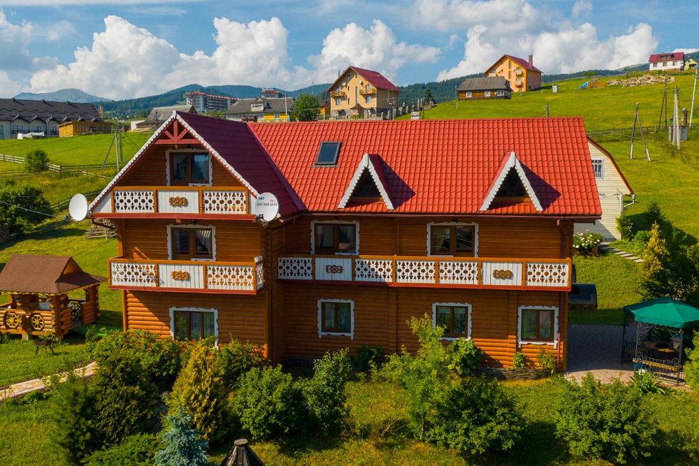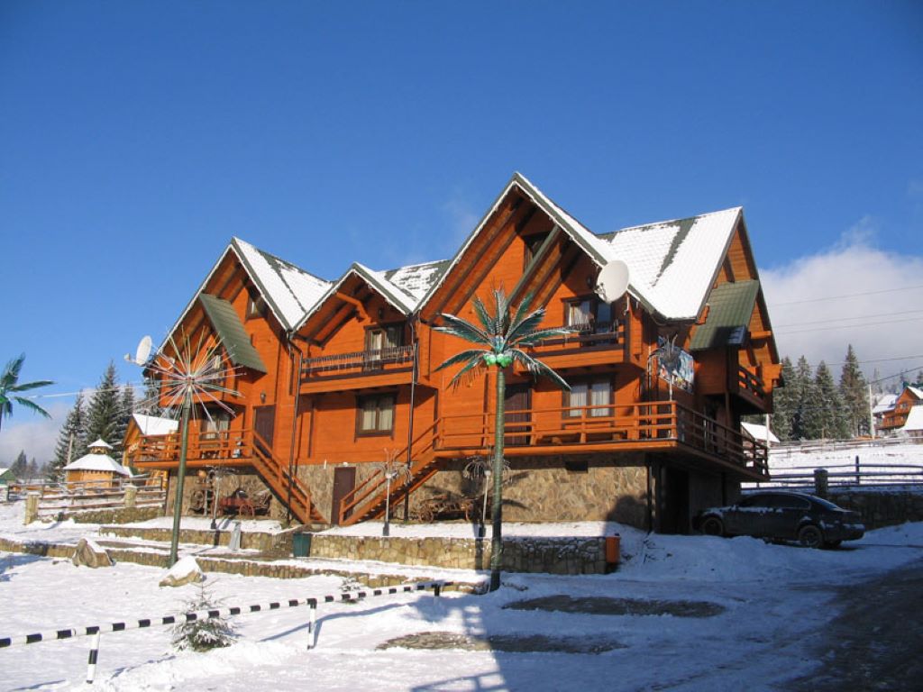 Все коттеджи гостиницы Буковеля «Красна Поляна» построены по технологии домов-срубов из карпатской ели, что обеспечивает им полную экологичность.