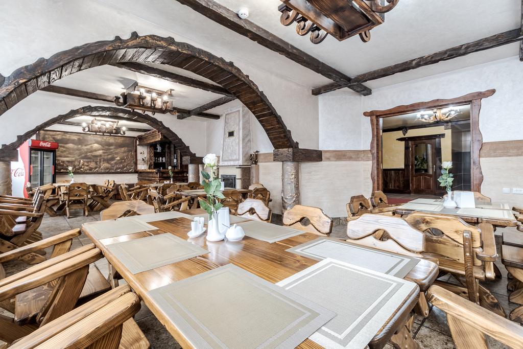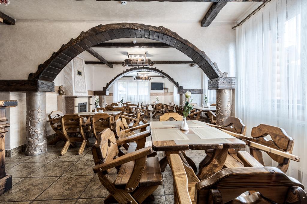 На первом этаже находится ресторан с террасой, лобби бар с каминным залом, где Вы можете попробовать пиво "Бартика" собственного производства.