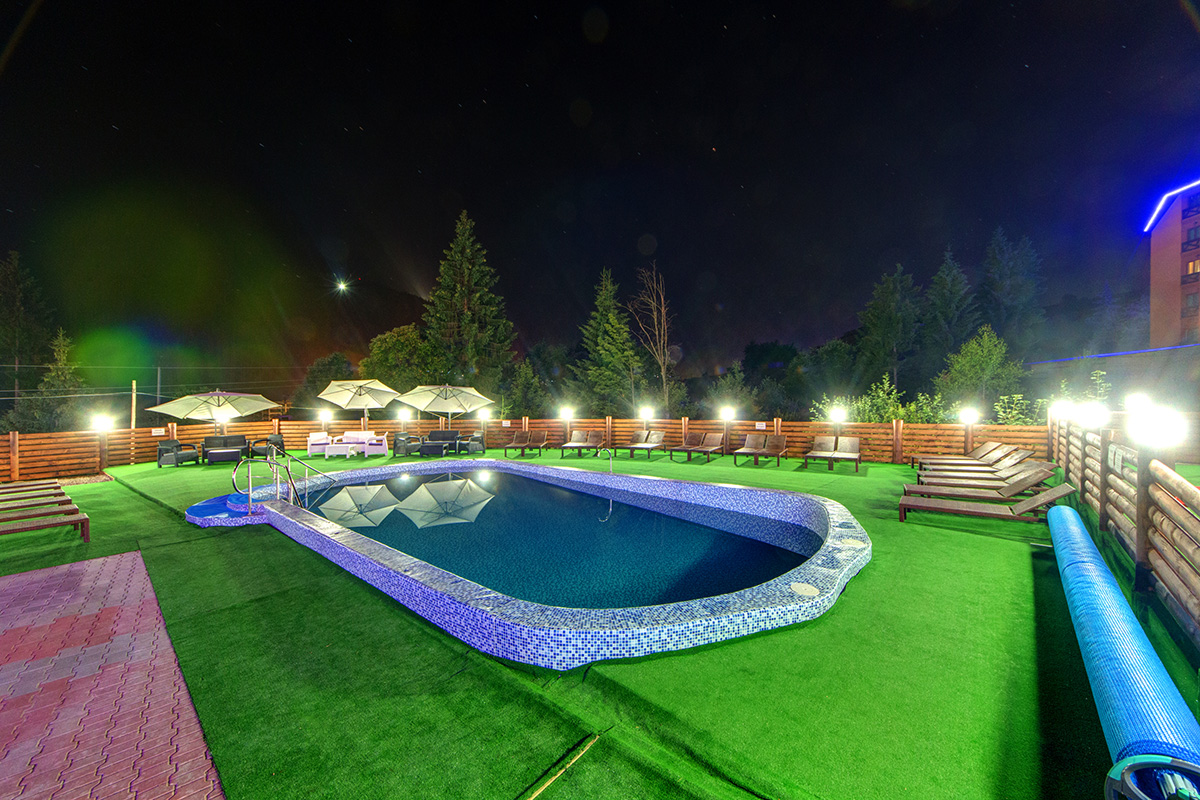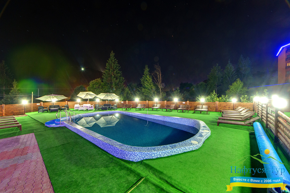 - наличие открытого бассейна