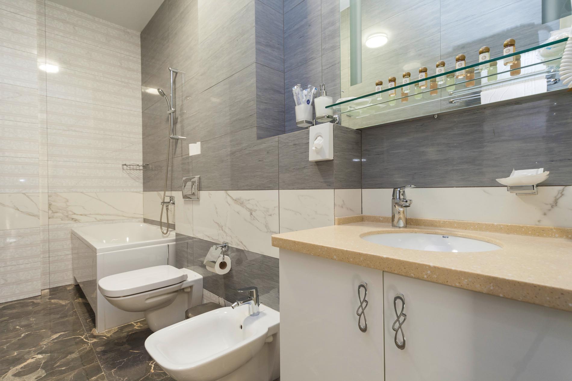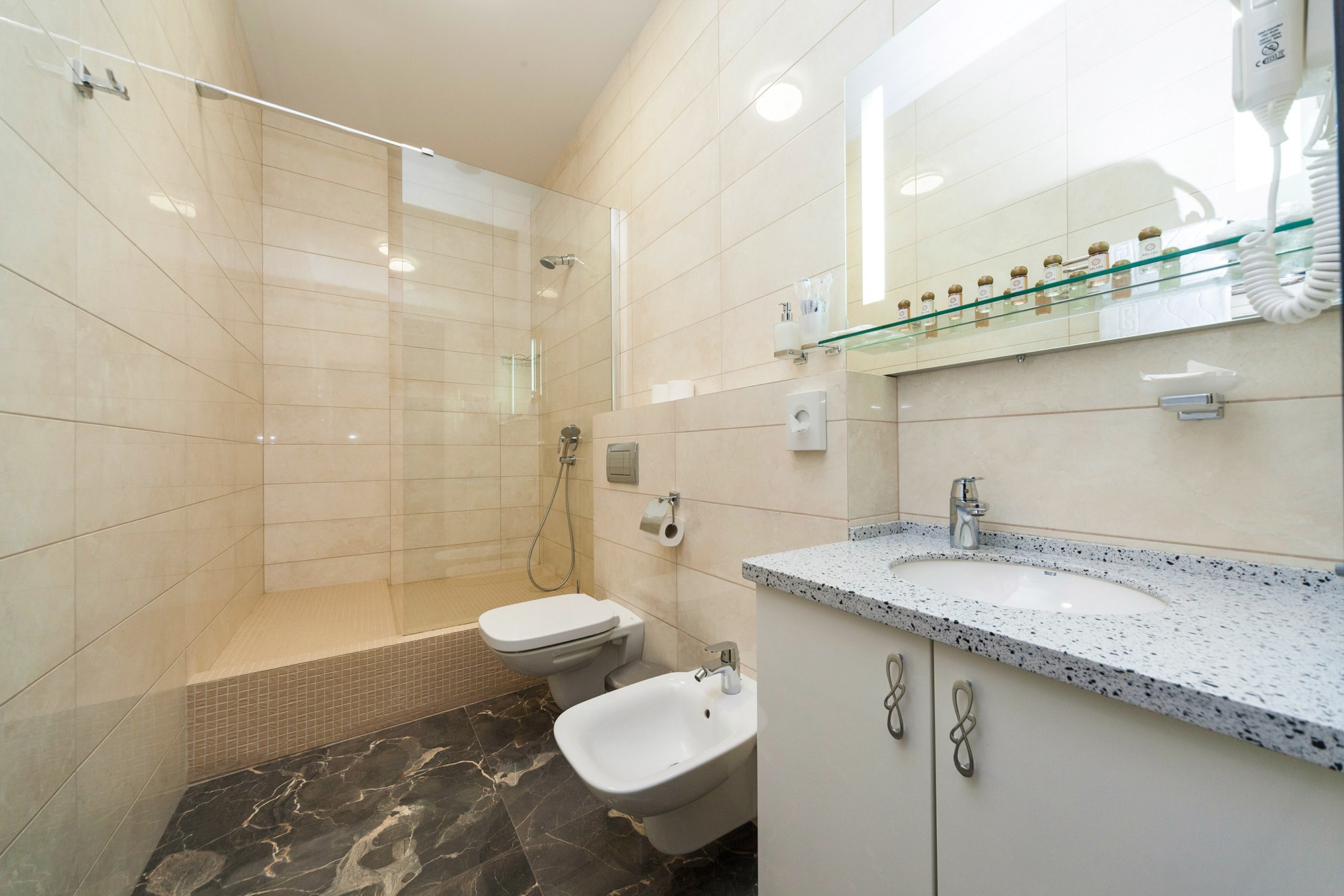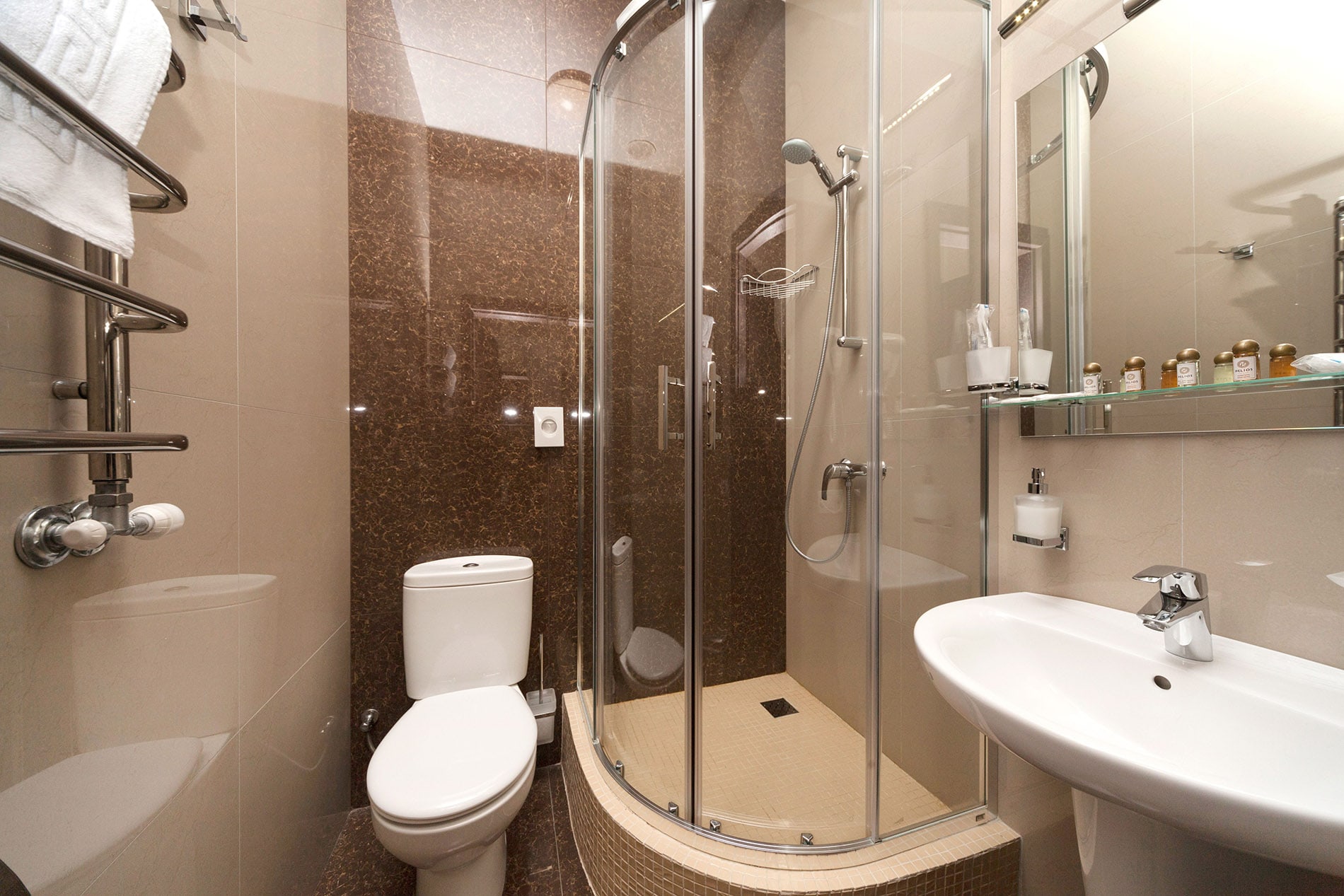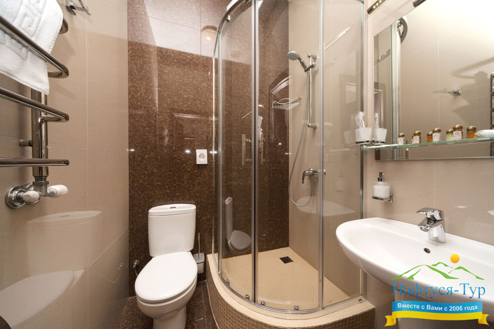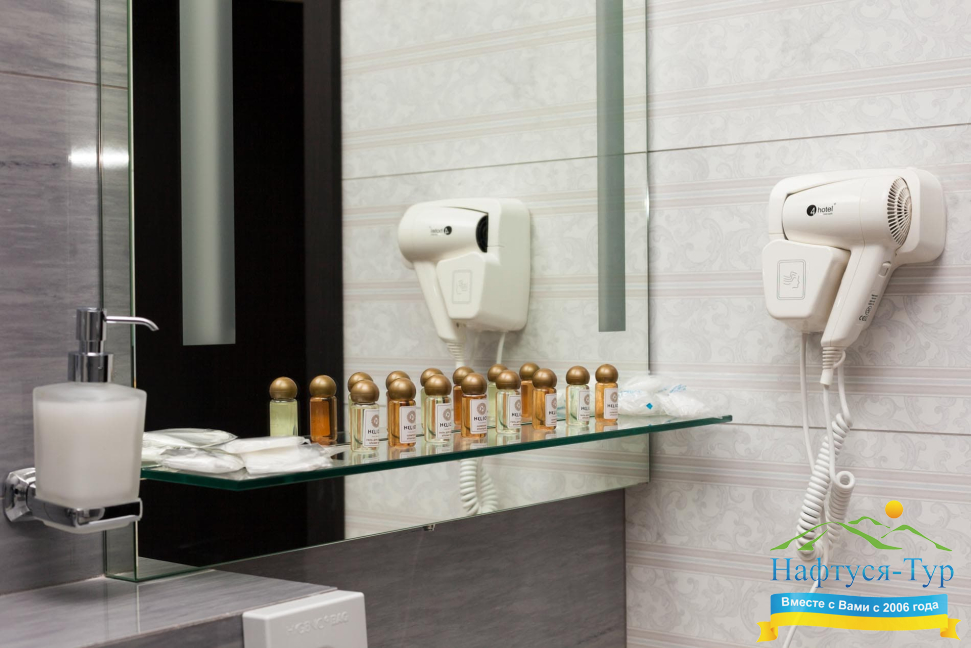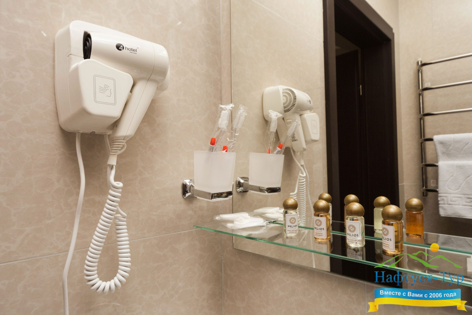 • душевая кабина, фен, косметический набор