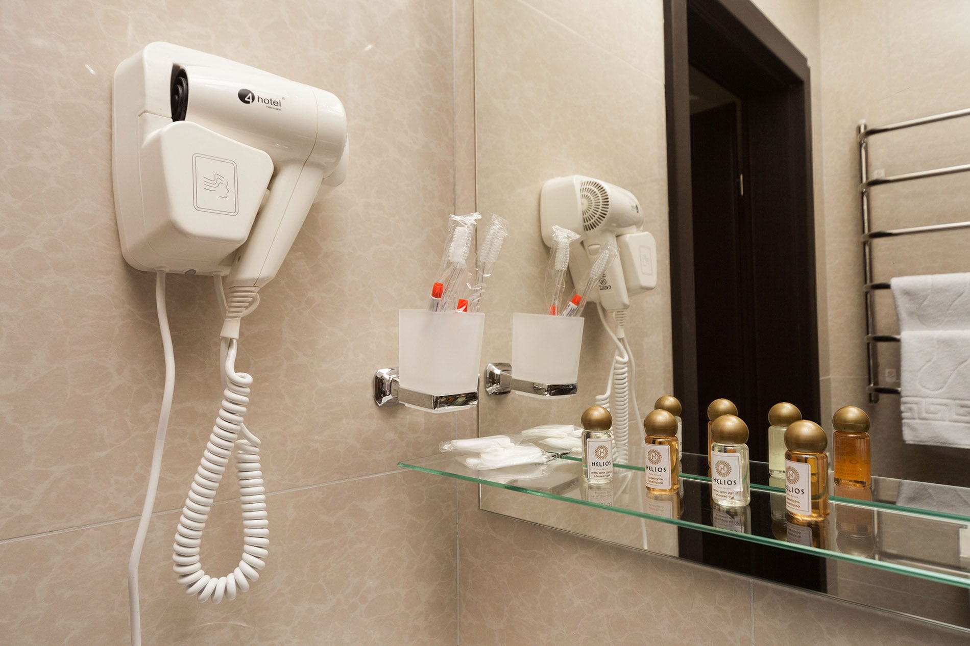 Ванная комната: душевая кабина , фен , косметический набор
