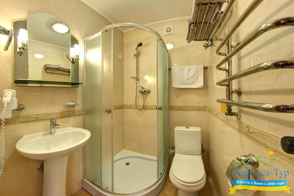 - душевая кабина, косметический набор, фен