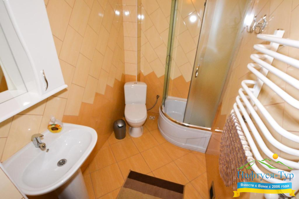 - душевая кабина, набор полотенец