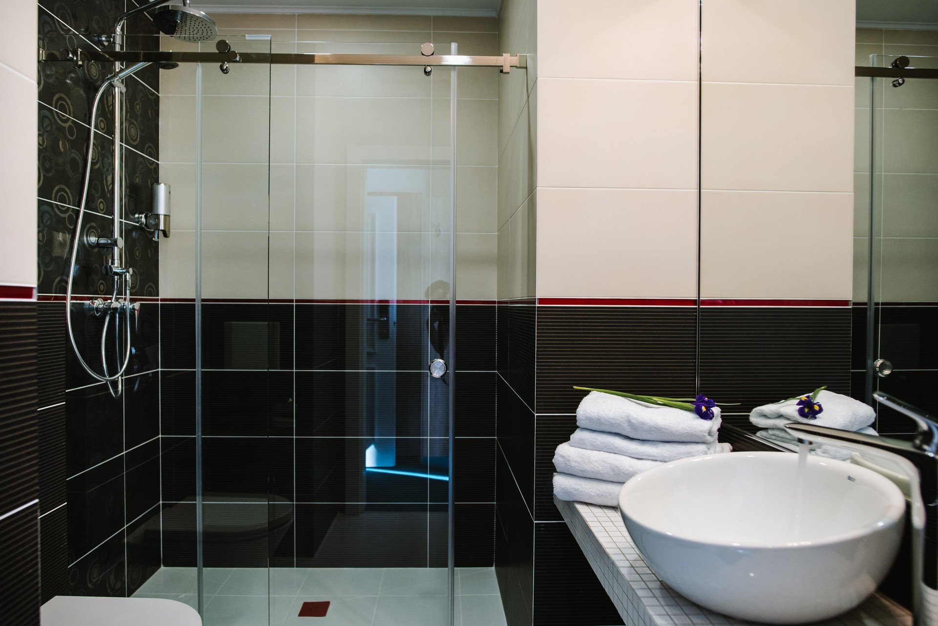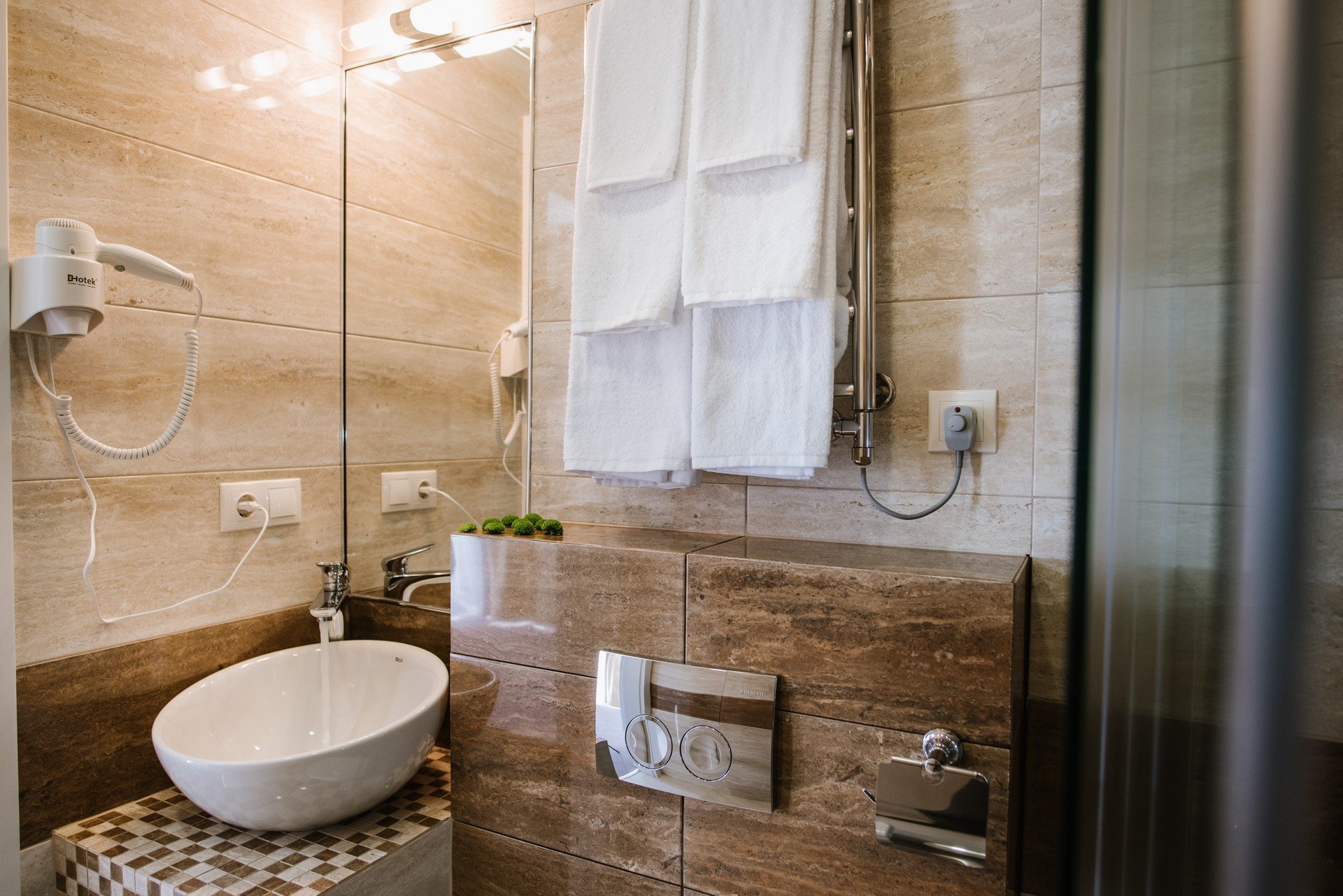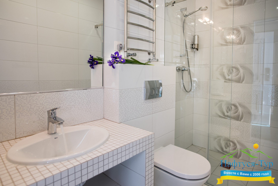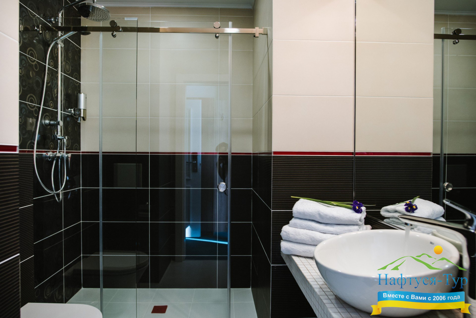 - душевая кабина, фен, косметический набор