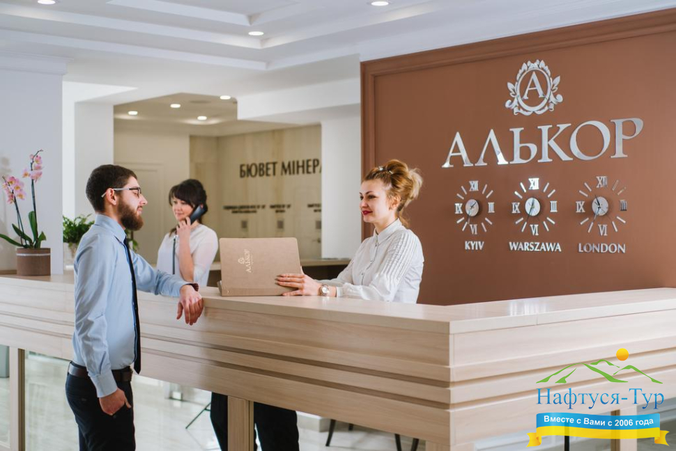 Отель «Алькор» (Трускавец) – новейший, вступивший в строй в 2018 году гостиничный комплекс премиум-класса. Здесь вас ожидает высокий комфорт и лучшая медицина. Медицинский и СПА-центр «Алькора» «Здоровье & Красота» – это заведение нового поколения, которое может предложить многое сверх того, что традиционно обеспечивает знаменитый украинский бальнеологический курорт, включая эффективные методики омоложения. В Трускавце отель «Алькор» известен не только уютом номеров и сервисом, но и многим другим. В первую очередь гости отмечают находящийся на первом этаже ресторан с открытой кухней, позволяющей посетителям наблюдать за процессом приготовления блюд.