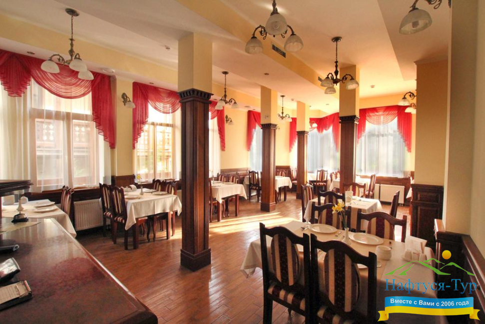 Уютная обстановка и нахождение в центре Трускавца выгодно отличают отель от других отелей курорта.