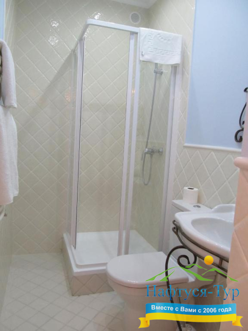 - душевая кабина, фен, косметический набор