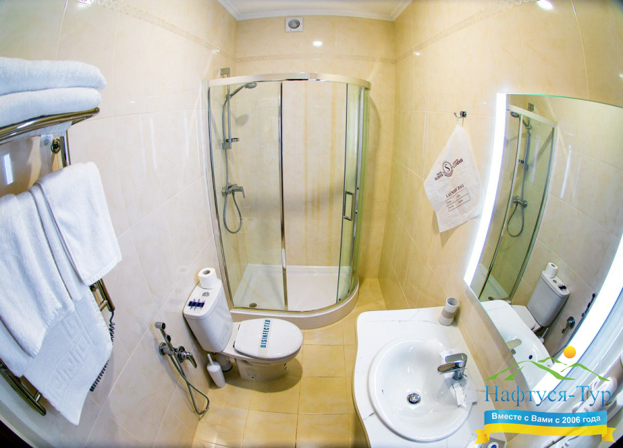 - душевая кабина, косметический набор, фен