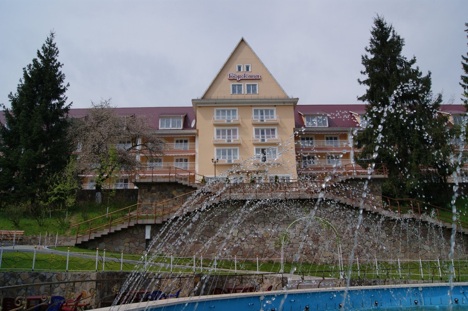 На территории санатория «Боржава» к услугам гостей предлагаются терраса с фонтаном, беседки, мангалы и барбекю.